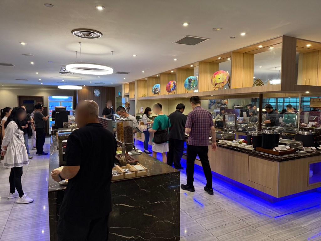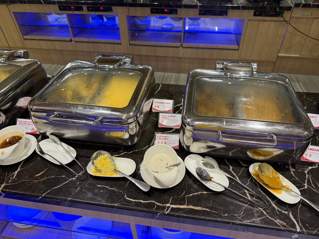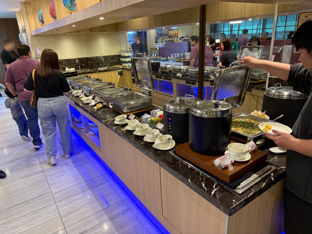 As mentioned, about half the dining area is dedicated to a buffet. The hit buffet is over to the right, and in the center there is a mix of cold options, including salads, cereal and breads.