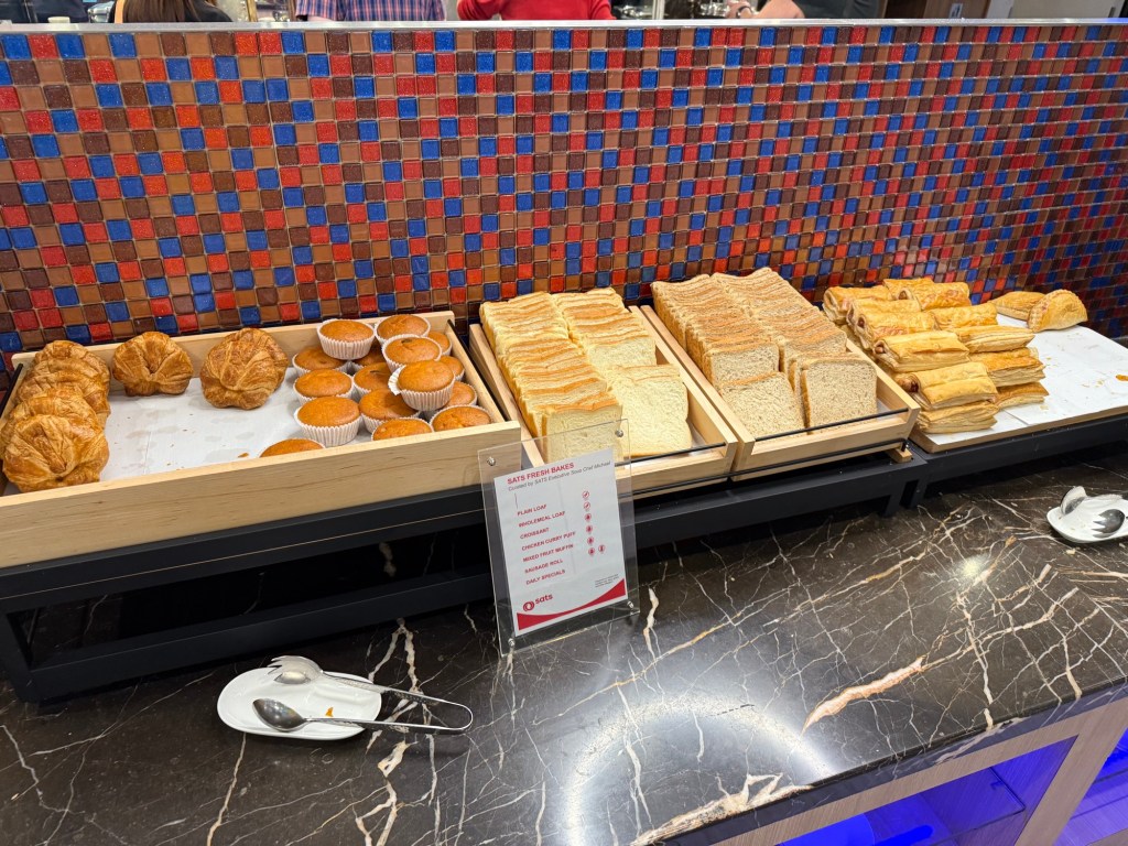 Further down there was a selection of condiments available, and around the corner a selection of breads. There was also a little oven to toast these items. I did try the croissant and thought it was just okay, so perhaps putting it through the oven would have been the better choice.