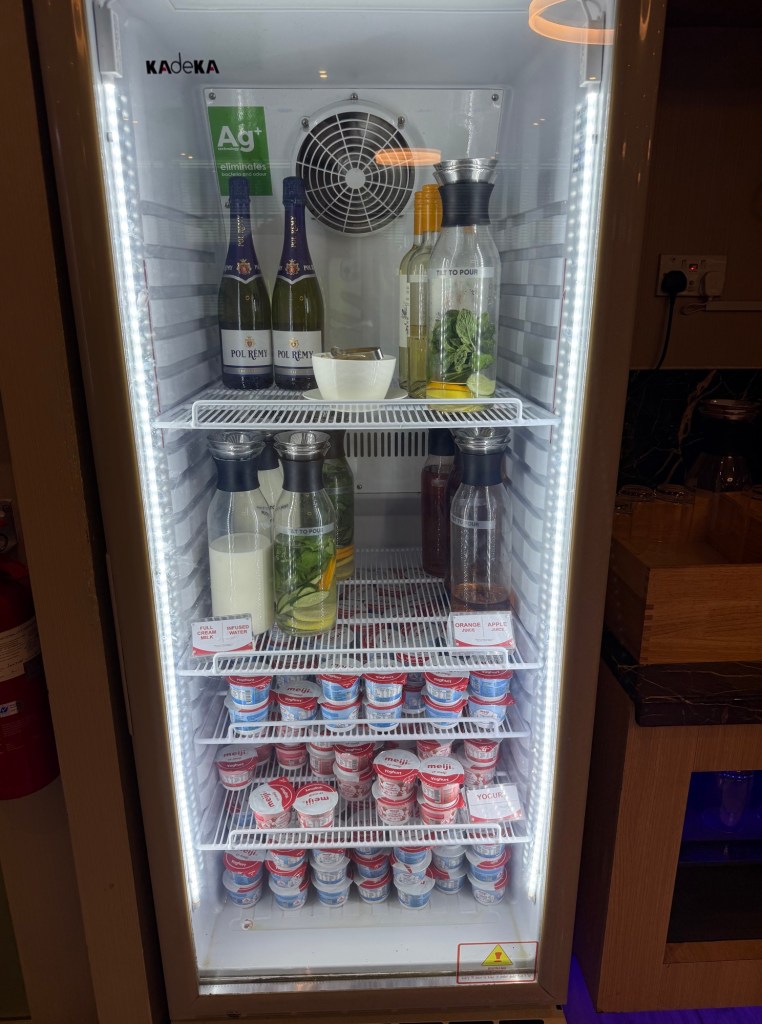 In terms of drinks, there was a selection of both alcoholic and non-alcoholic options, and I’d say neither was particularly extensive, though they got the job done. In terms of non-alcoholic options, there was a dispenser for cold water, a fridge with various sodas, and am espresso machine that made a variety of hot drinks. This also dispensed hot water for tea. Another fridge held milk and several juices.