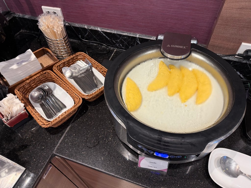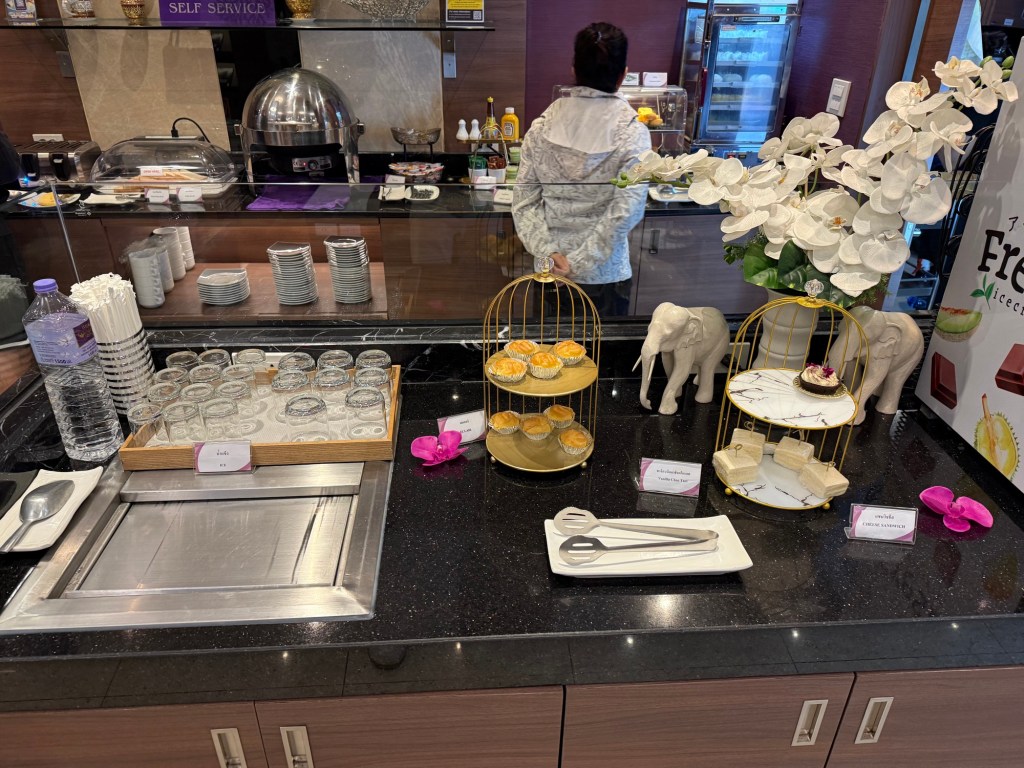 Overall, I’d say that the buffet had a somewhat eclectic collection of the options. As was the case with Coral Executive Lounge and the SATS Premier Lounge in Singapore, I felt the Western options (such as the omelet) were more or less okay, whereas the local (Thai) options were of significantly better quality. I really liked the pork buns and the Thai-style desserts, both the custard and the ice cream options.