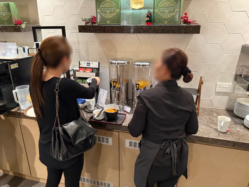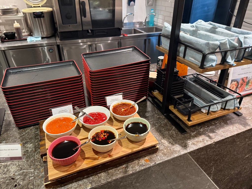 Overall, the Plaza Premium Lounge is an elegant lounge with a nice, earthy design and plenty of comfortable seating, of various types. I appreciated the extent of this variety, with wide, comfy lounge chairs, to various kinds of booths, to a hybrid dining-lounging area, to a proper dining setup by the buffet. However, it was rather crowded when we entered and it didn’t let down while we were there. This did somewhat diminish our choice in where to sit.