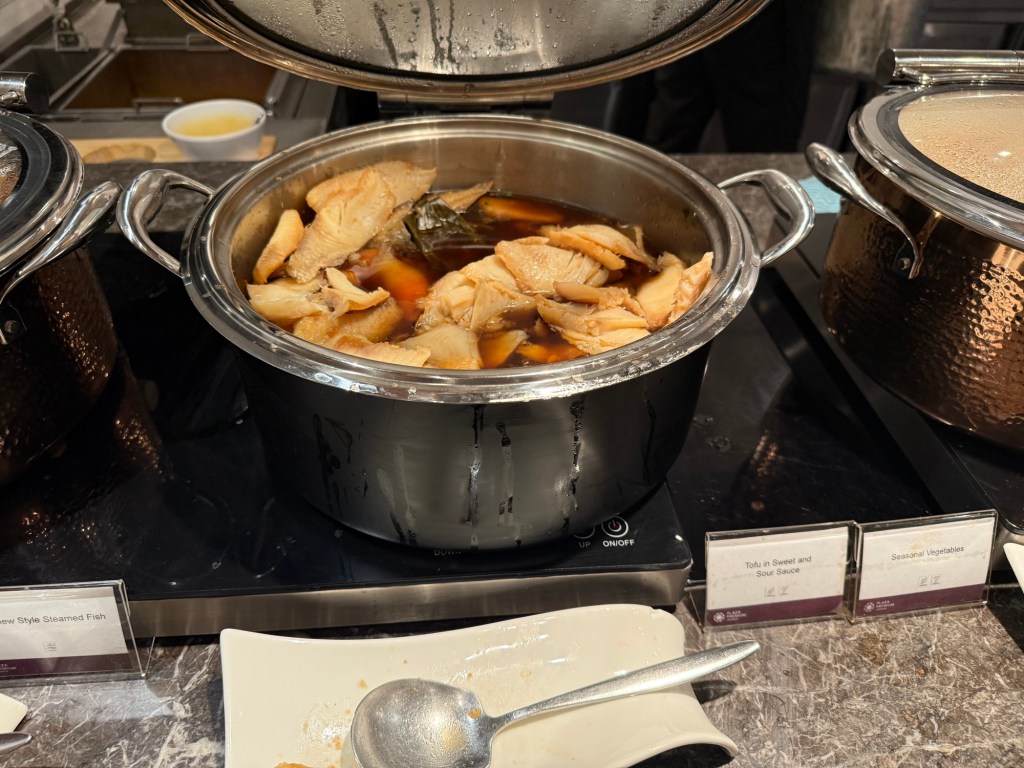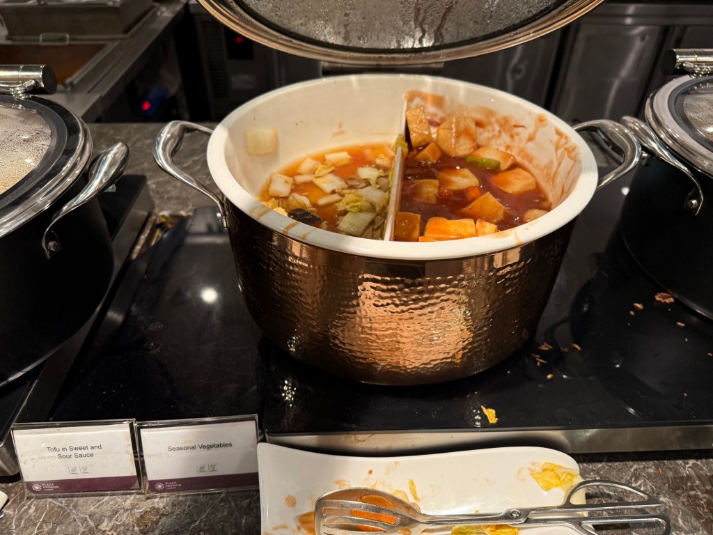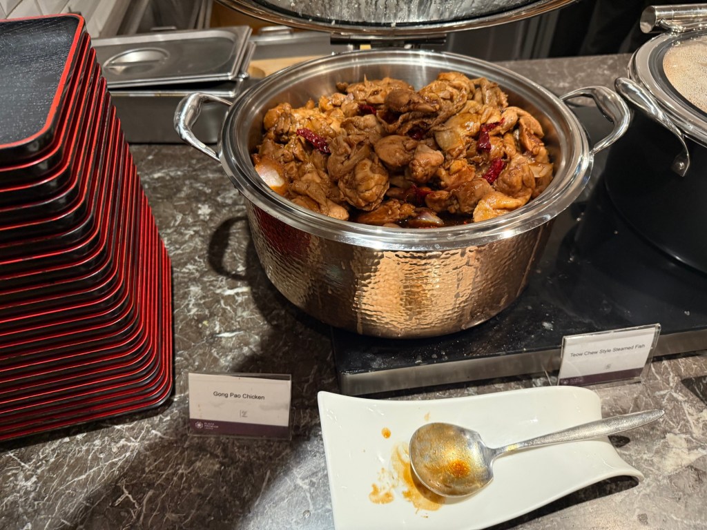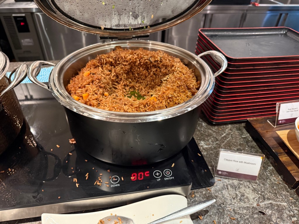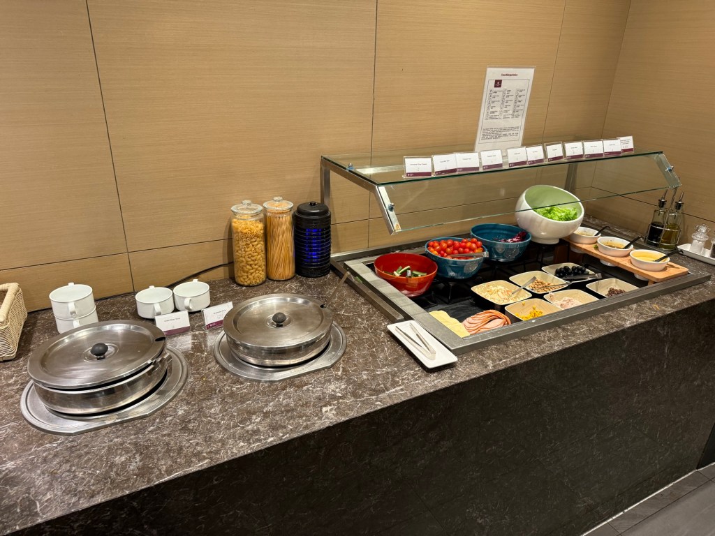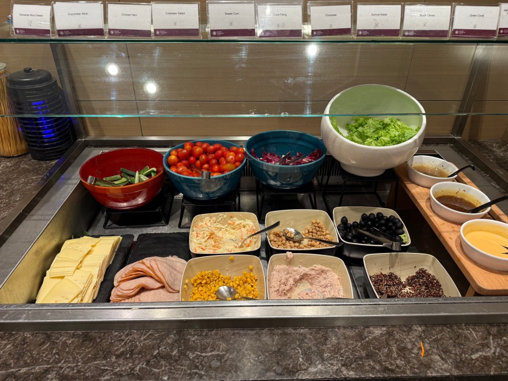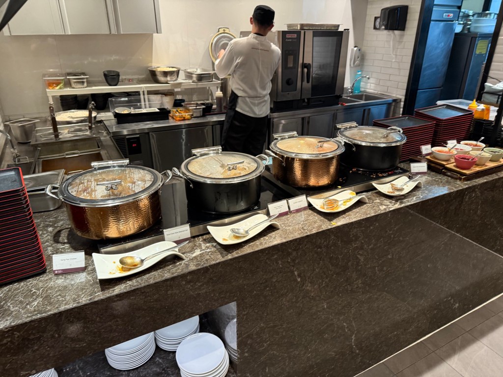 By the dining tables the main buffet was located. This was an excellent spread of food given that this is a Priority Pass lounge. There was a slection of hot and cold options