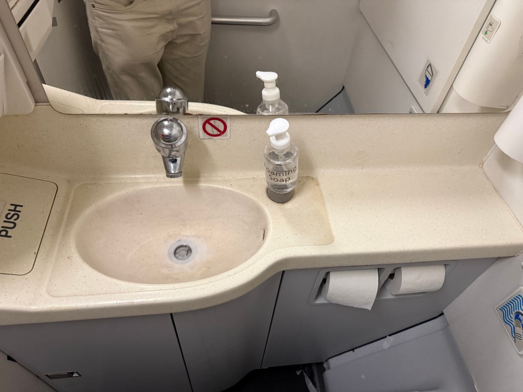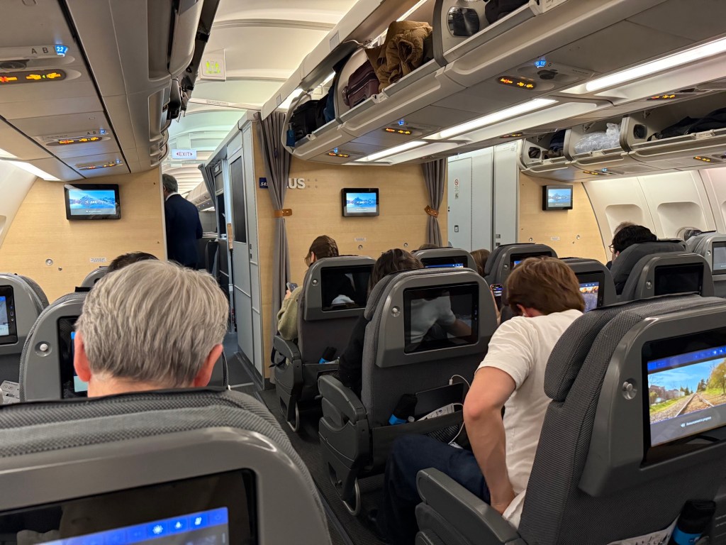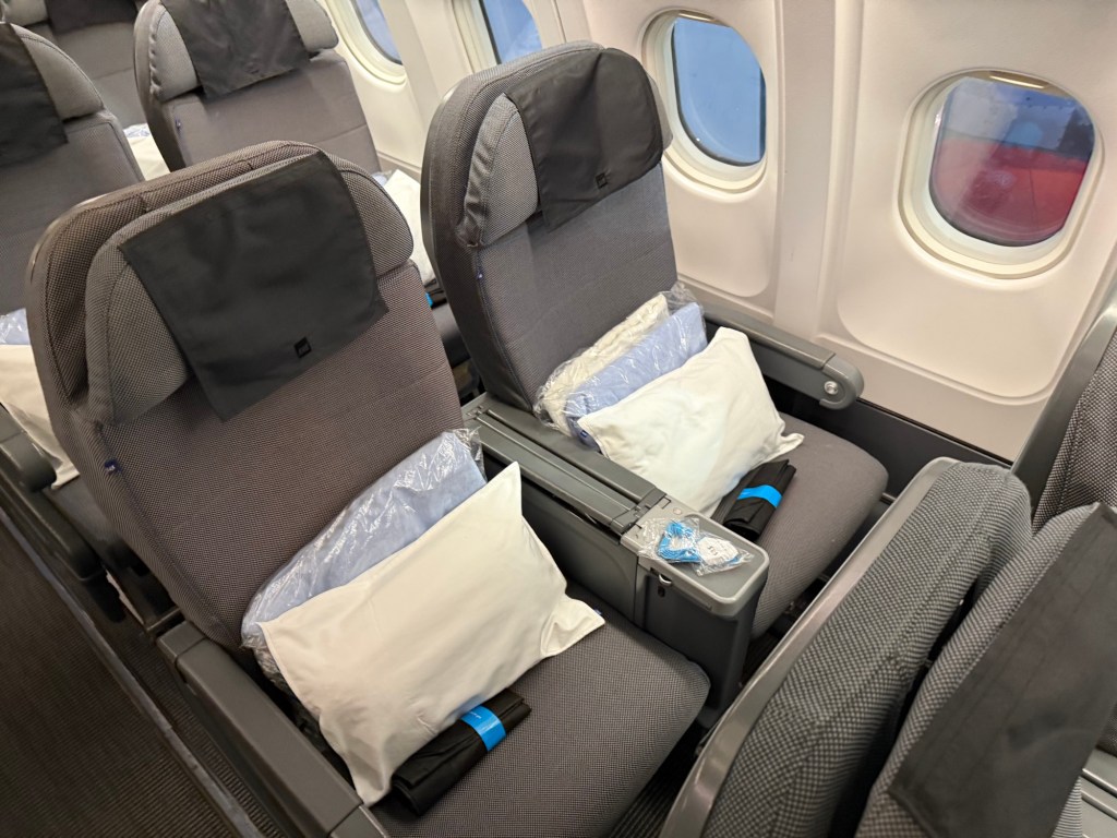 The cabin is older on this A330, and stands in some contrast to the carrier’s A350, both in a good and bad way: on the downside, the interior does look more worn and the seats don’t have the newest technology. On the plus side, I really find these older seats to have better padding than the newer seats, especially in Economy.