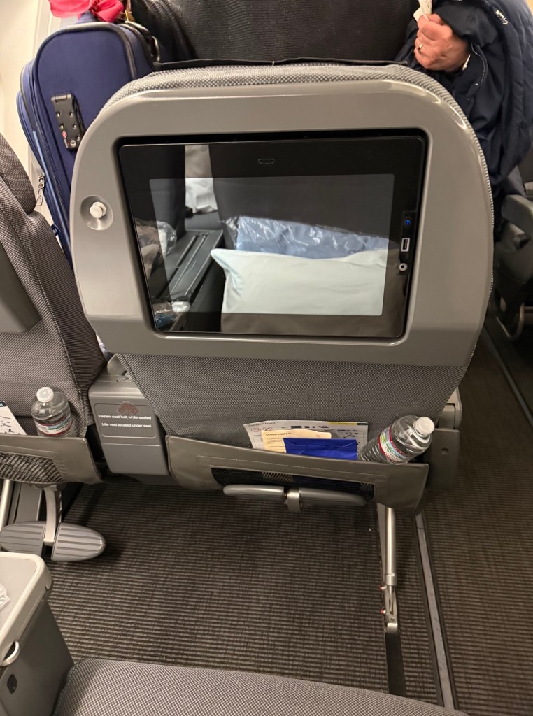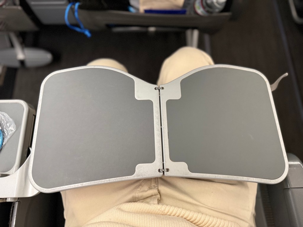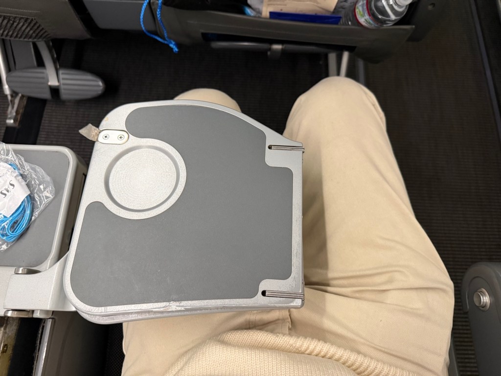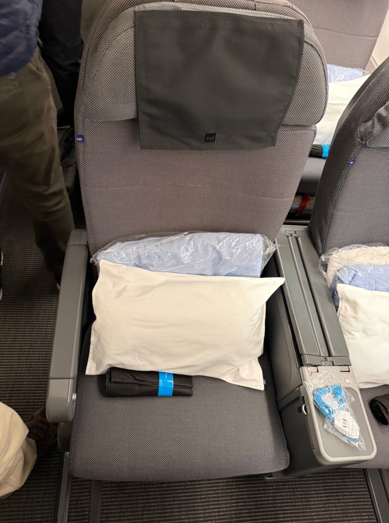 I was seated in seat 12A, which I had not selected for myself, but rather, was automatically assigned that seat upon my upgrade. Hey, I’m not complaining if the alternative would have been Economy! As you can see, these seats kind of look like a larger version of the Economy seat.