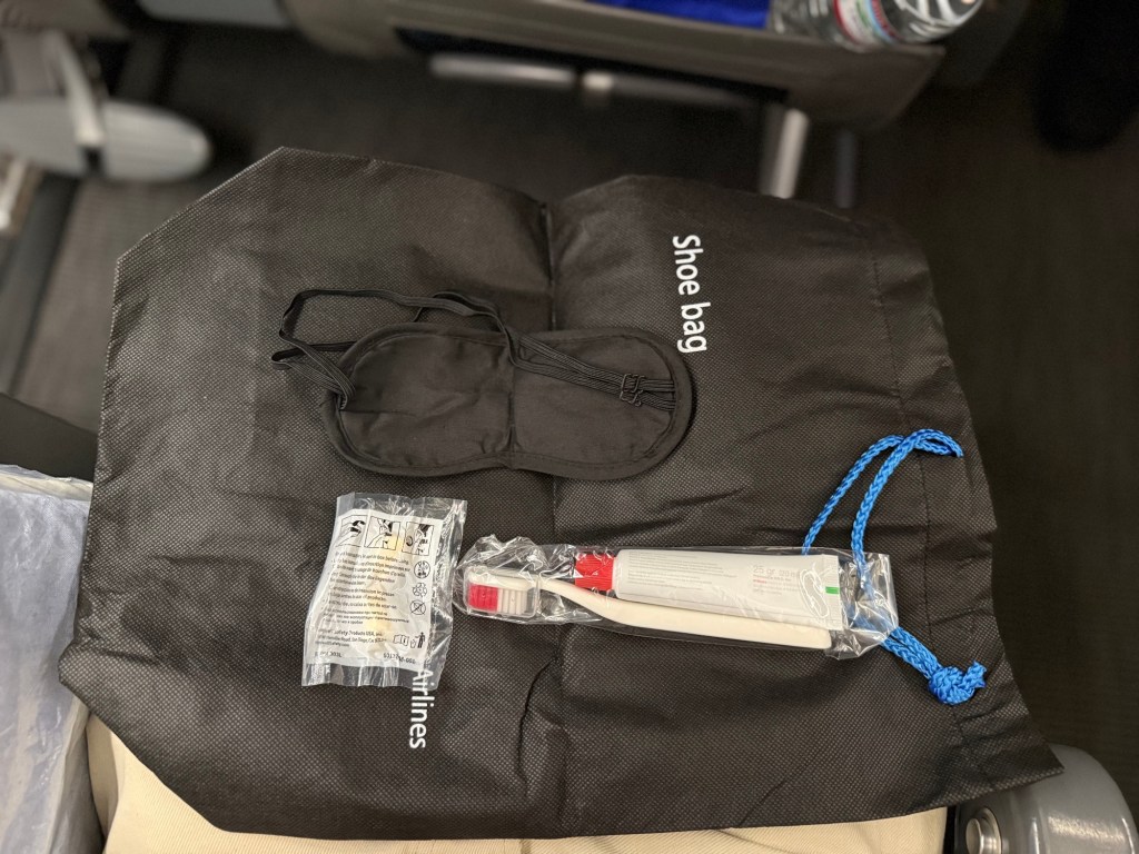 Overall, these were a nice set of amenities. I very much liked the big, soft blanket, and was happy with the practical amenity kit and elevated pillow.
