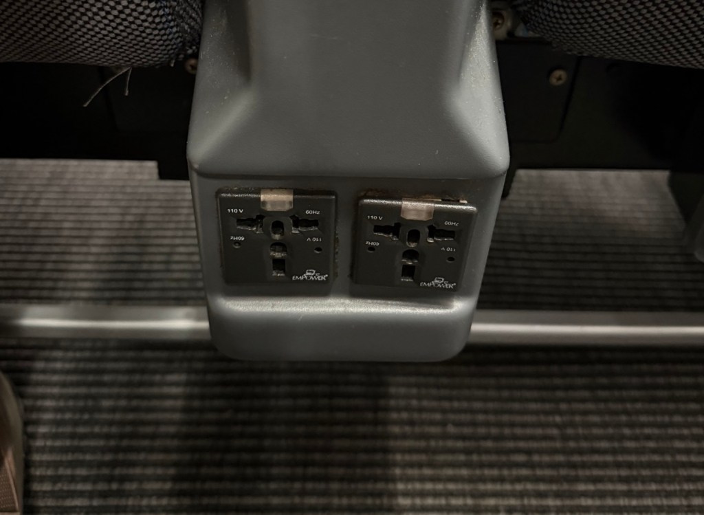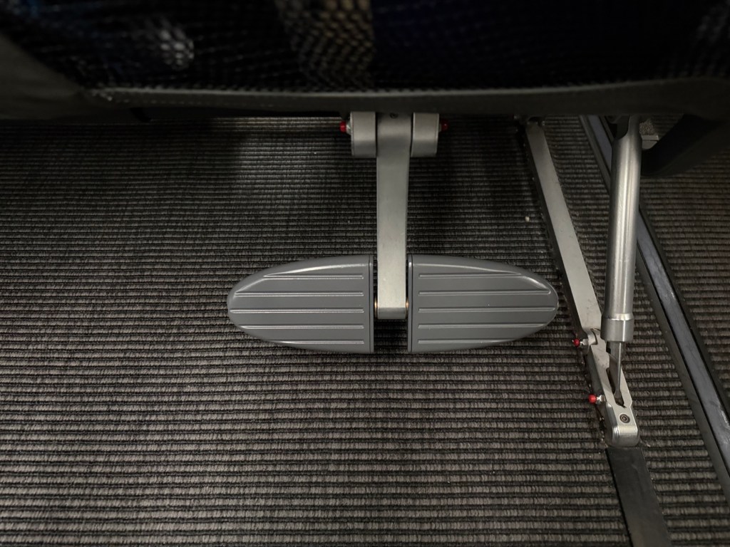 In-between the seats in front and down at the bottom were two universal power plugs. There was also a leg rest that could be folded down from the seat in front., and I thought this one was positioned appropriately. It was comfortable, while sleeping to pull this down all the way and rets my feet on it. Finally, up above there were no individual air nozzles, unfortunately.