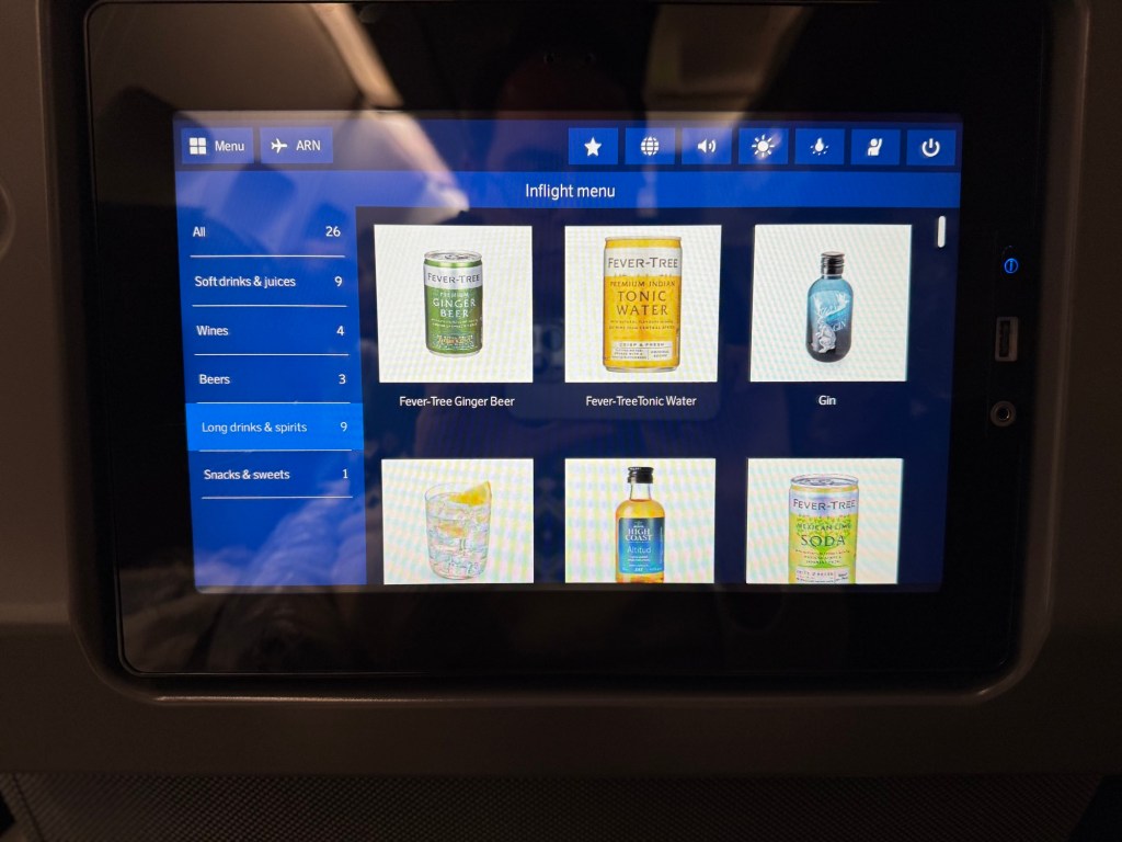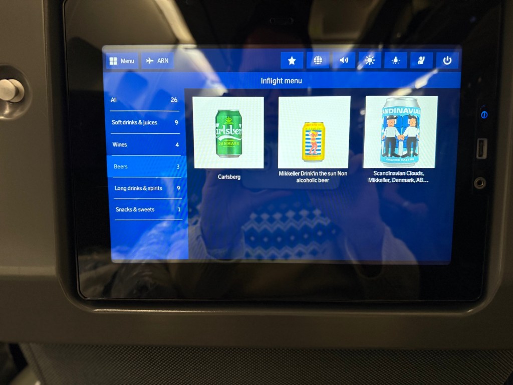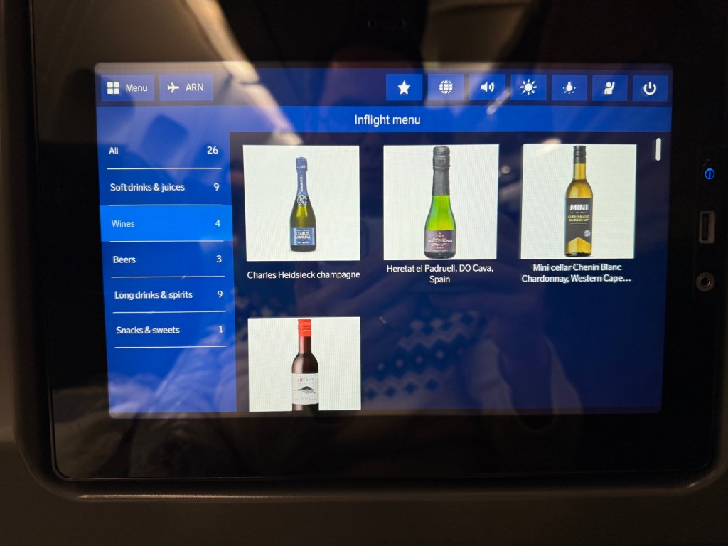 The ‘Inflight Menu’ button will show you all the drinks and snacks that are available onboard, including alcoholic and non-alcoholic drinks. Clearly, in terms of foods there were only nuts, but it was useful to see what drinks were otherwise available.