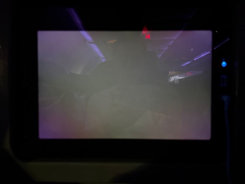 Since I wasn’t sat at the window seat, I couldn’t make any pictures out the window. This SAS A330, to my surprise, was however outfitted with cameras! Specifically, there was a cameras at the front of the plane. Unfortunately, the quality of the display was rather bad, especially in the dark. This was late December, so by 6pm it was essentially dark outside.