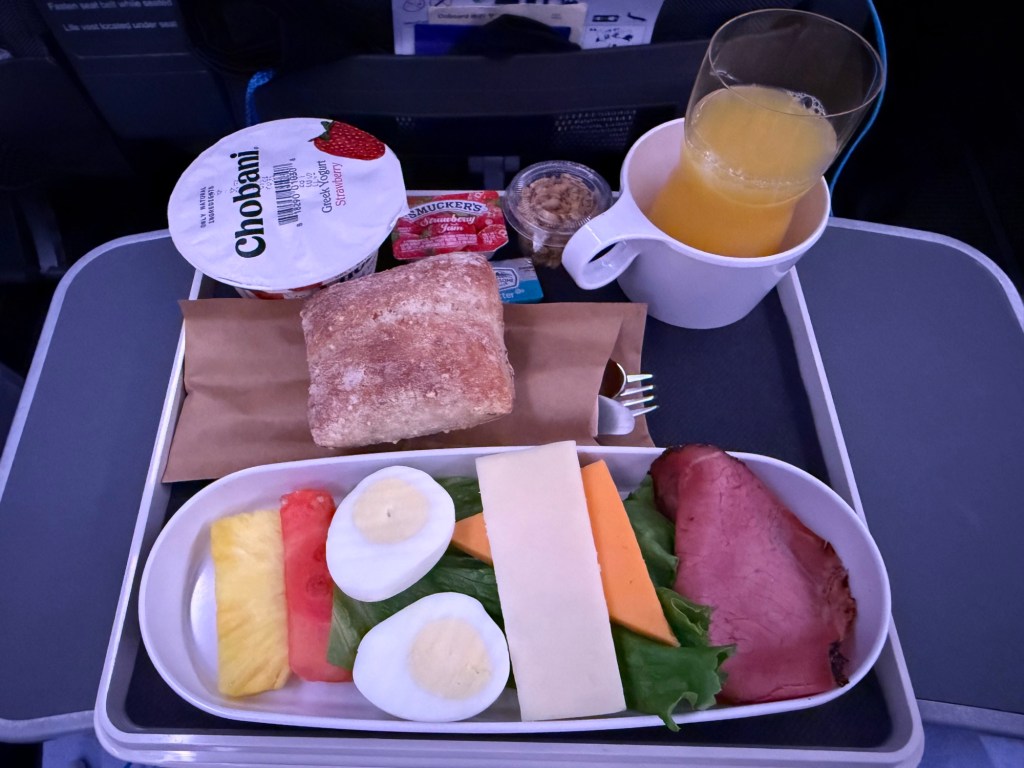In this flight, that consisted of a hard-boiled egg, some fruit, cheeses and cold cuts and a warm bun, as well as some yoghurt and muesli. It seems like a typical Northern European brekafast to me, and myself being Dutch, this is precisely what I’d have at home. However, I’m not at home – I’m flying SAS Premium Economy and if I’m honest I was hoping for something a little bit more substantial.