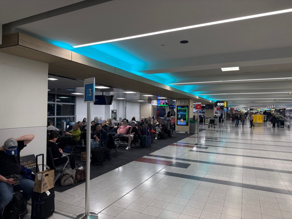 Following security I went to the Delta Sky Club by Gate B32, which I have reviewed before. I was granted access by virtue of SkyTeam Elite Plus status, which I get because I have Air France-KLM Flying Blue Gold status. Below are some photographs from that time, though the picture of the food was my dinner during this trip. I do like Delta’s Sky Club food. It definitely beats much of the food on offer in the terminal…