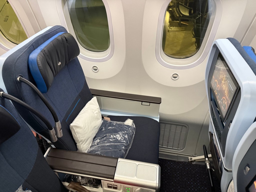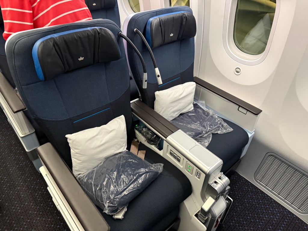 Overall, I thought KLM’s Premium Comfort made for a very nice experience, and I much enjoyed it. I thought the seat was a significant step up from economy. The extra width and legroom are very welcome upgrades, and the padding makes the seat more comfortable to sit in for an extended amount of time. The seat’s features provided for some useful additional storage and has plenty of universal electrical plugs as well as USB-A and USB-C plugs. Overall, I thought this was a thoughtfully designed seat.