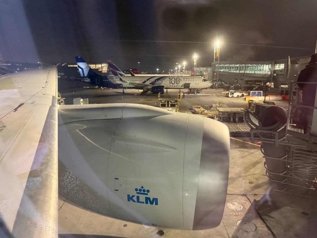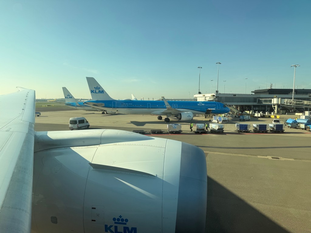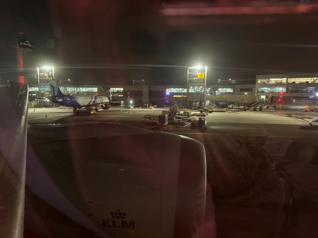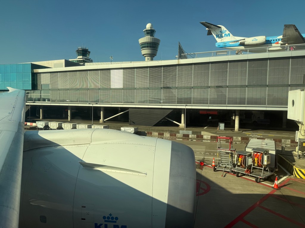 Last time I was here was in 2024, and it was right before I left the lounge to go to the gate that I realized I could get a fantastic view of the KLM Boeing 787-10 that would carry me to Amsterdam. So this time I was prepared: I tracked the arrival of PH-BKK using FlightRadar24, and as I saw it taxi to the gate on the map, I positioned myself at the window so I could take these beautiful photos of the Boeing 787-10 arriving at the gate!