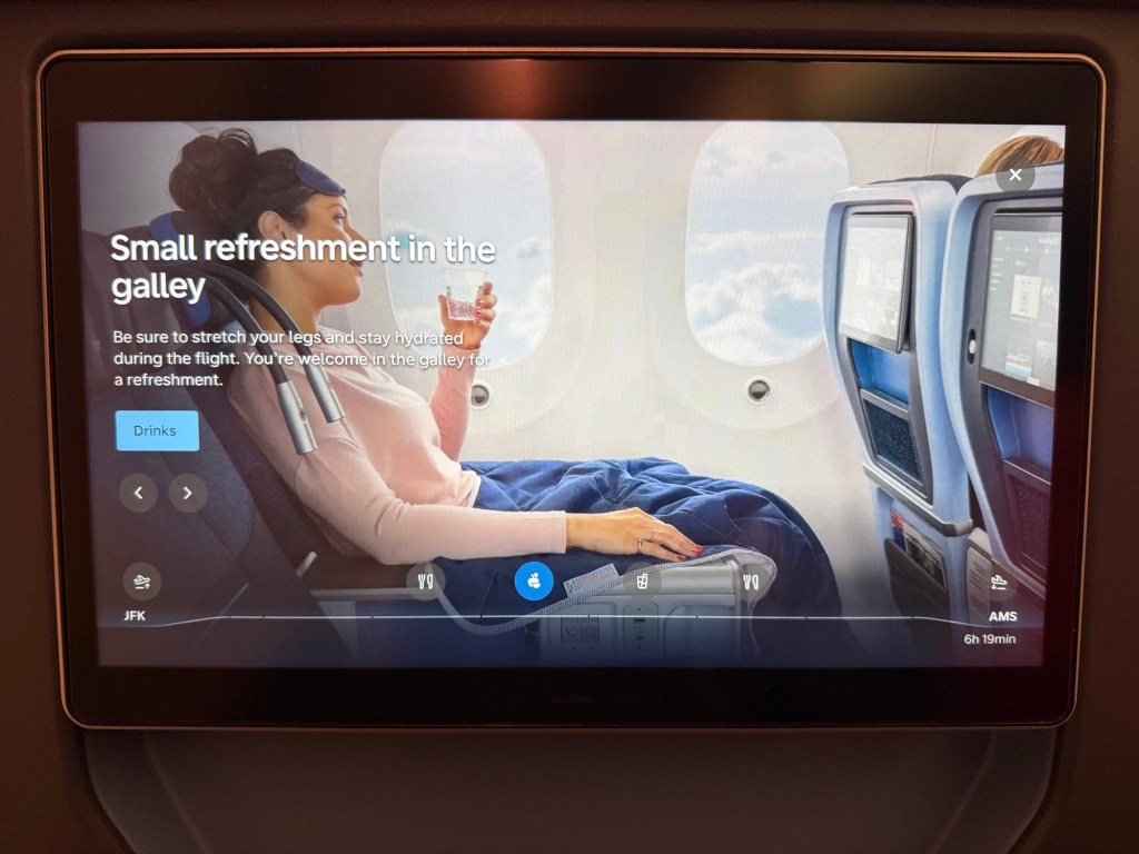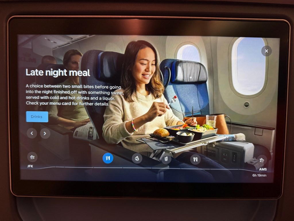 I also enjoyed the food. The portions were a good size, the food was tasty and more creative – definitely elevated over economy and I wouldn’t say it’s all that different from business class. The latter has nicer presentation with porcelain dishware of course, but I don’t think the Premium Comfort Food is all that different in terms of ingredient quality and taste. In that same vain, I thought the provided service was pleasant. I’ve always liked the service style at KLM (but then I’m Dutch, so I’m probably a little biased), but I thought it was particularly well-suited for Premium Comfort, since it was a good balance of being efficient yet personalized, informal yet professional. All in all, I’d be very happy to fly KLM Premium Comfort again!