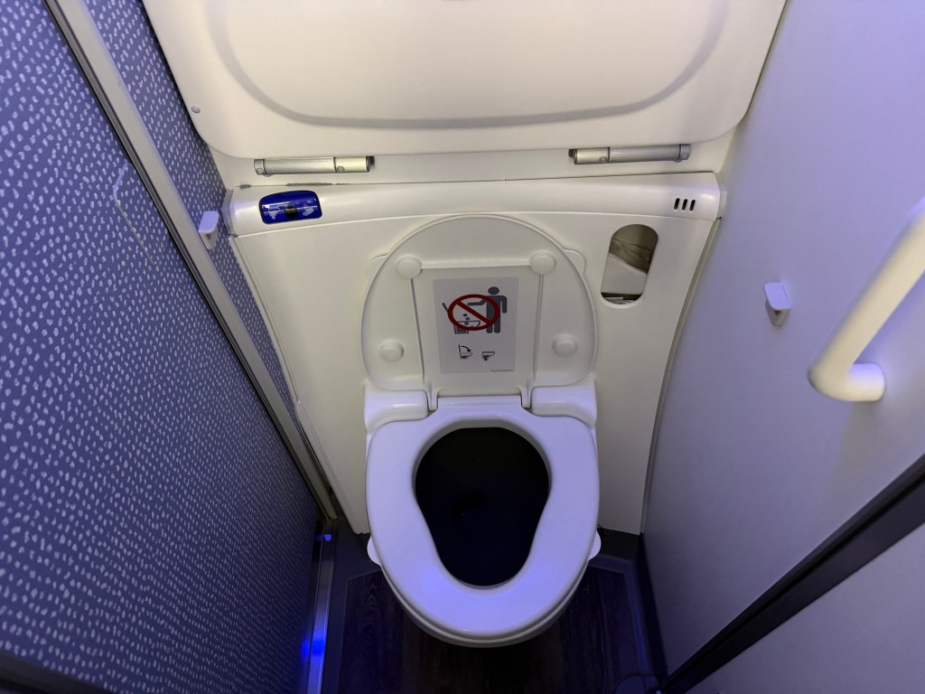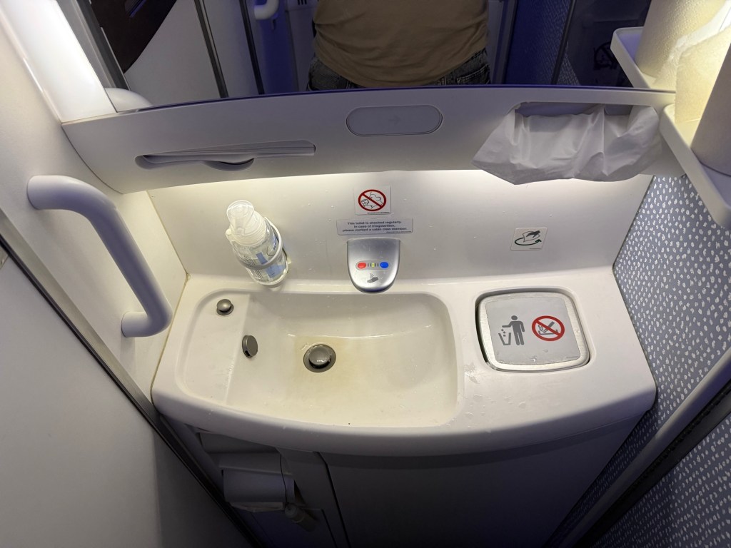 After dinner I sought out the lavatories before getting some rest. As is the case with so many airlines, the Premium Comfort cabin doesn’t have its own lavatories, so you have to walk back into the economy cabin. Of course the economy cabin lavatory is nothing special, without any special amenities besides hand soap. On the plus side, the lavatory was generally kept reasonably clean.