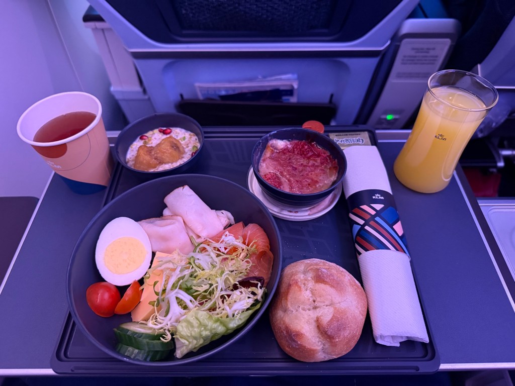 Overall, I thought the breakfast service was very nice, but I was surprised how similar this was (the same?) as the business class breakfast KLM served me back in 2024. I had enjoyed that breakfast as well, but I gotta say, I think it’s more at home in Premium Comfort than in business class. Just because I feel as though cheeses and cold cuts are not particularly ‘premium’, even if they are tasty… (the ham, at least).