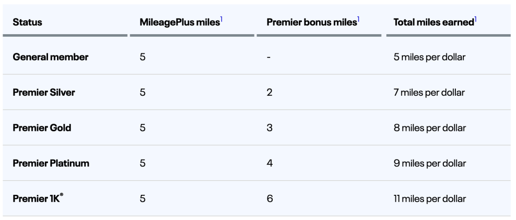 That is, unless you have a United credit card, in which case you will still earn the flat 3 miles/dollar rate that all credit card holders will earn in addition to the earn rate specific to their elite tier. Note these extra miles are earned for just having the card – if you’d also use the card to pay for the flight, you’s also earn the extra miles for putting spending on the United credit card.