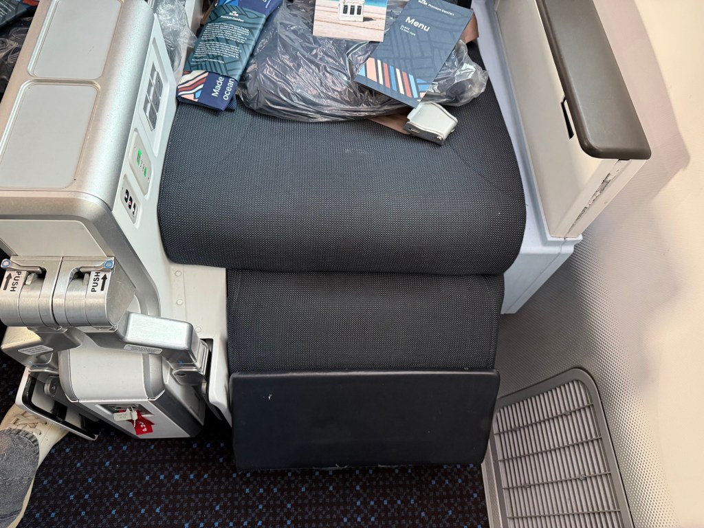 For my flight to JFK I was seated in the bulkhead row, rather than in the second row of the premium Comfort cabin. While the seat overall is the same, there are some subtle differences due to the fact that there is no seat in front. Also, this time I was actually the first to enter the Premium Comfort cabin, so I was able to get some overview shots of the cabin without catching other passengers in the photos.
