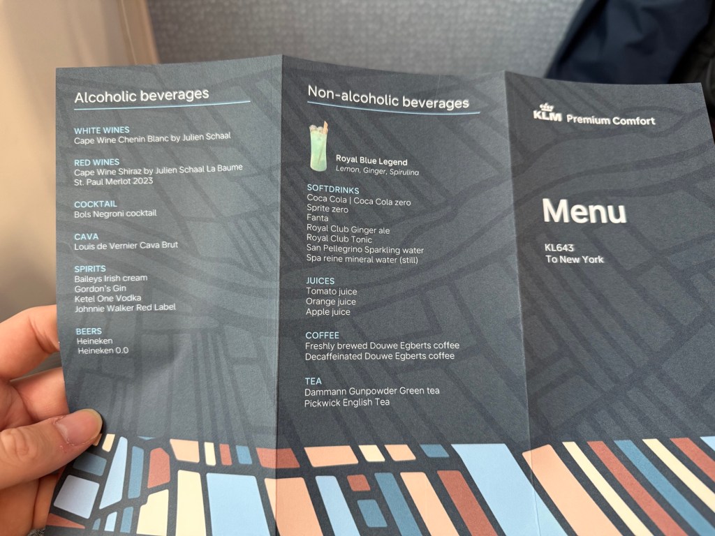 While I originally booked my flights in KLM’s basic economy (and then used my Flying Blue Gold status to get a bunch of perks) I had decided to upgrade to KLM’s Premium Economy cabin, which KLM refers to as Premium Comfort. I already reviewed this experience on the way to Amsterdam, but I want to review the flight back as well, since it’s a bit of a different service flow on the transatlantic day flight.
