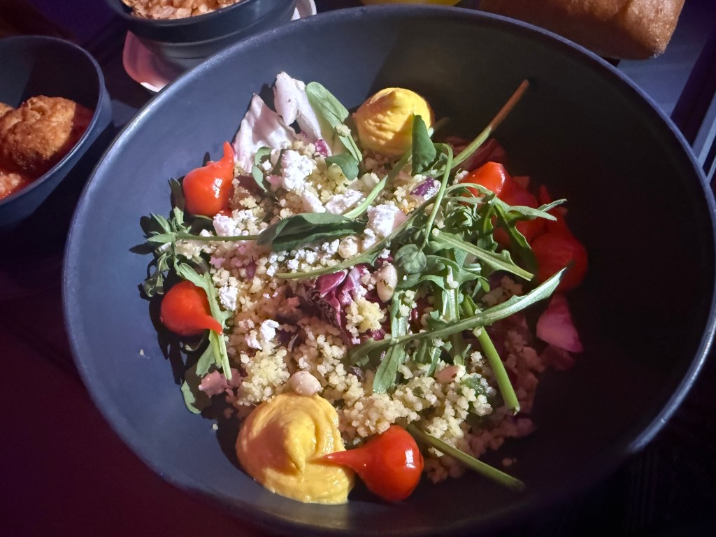 For the appetizer, there was a spicy chilli shrimp salad, which was very tasty, and not particularly spicy. As a side dish with some Dutch cheese with grapes, and while I had the grapes, the cheese wasn’t really my thing.