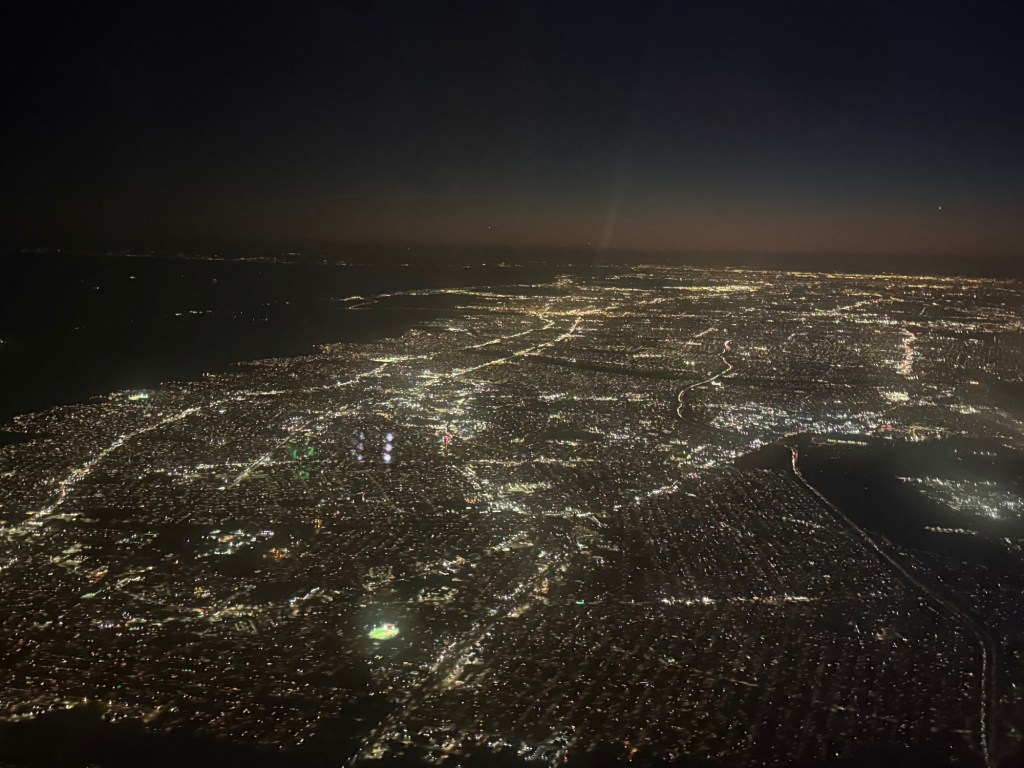 Not long after we were already flying over Long Island and the pilot got onto the PA to announce we’d be descending in a bit. Given how dark it was, there wasn’t all that much to see, except for the lights of Long Island.