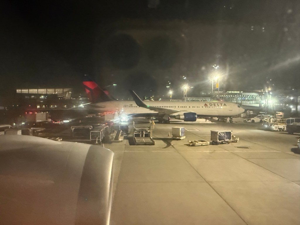We made made a straight-in approach into JFK, and touched down fairly hard around 8pm EST. Unfortunately we were stuck crossing a runway so it took about 20 minutes before we pulled into one of the B gates at JFK’s Terminal 4.
