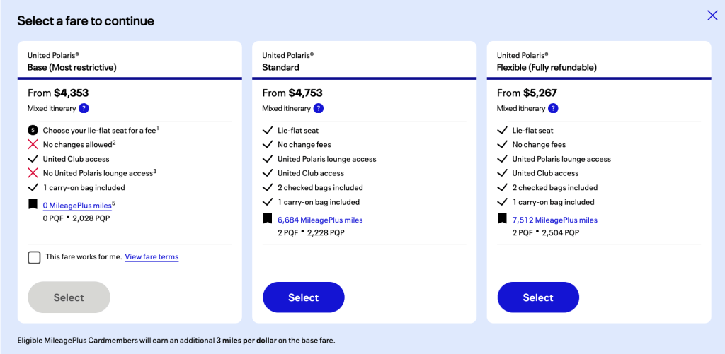 What is rather a bummer is how these fares will not earn you qualifying flights, but only qualifying points. So, they only count towards one of the two metrics to earn status with United. Given that these tickets are still business class tickets and will cost several thousands of dollars, it’s rather disappointing that qualifyinf flights won’t be obtained from these basic fares.